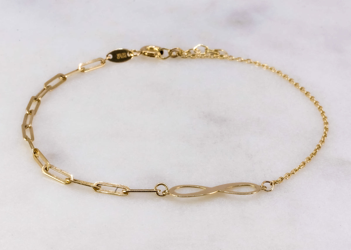 Pulsera de infinito central 14k